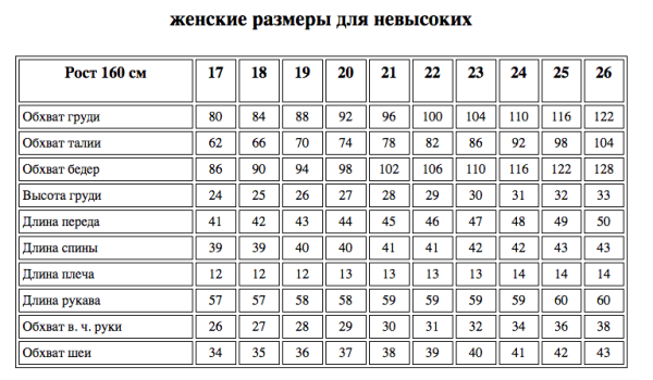 таблица размеров грудь талия бедра